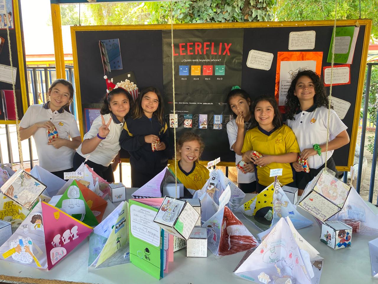 La actividad LeerFlix reunió diversos trabajos prácticos inspirados en lecturas complementarias realizadas por los cursos. Las y los estudiantes elaboraron librillos con secuencias de escenas y las características principales de cada novela, además de cubos literarios y cuadroramas que dieron vida a otras obras trabajadas en clase.