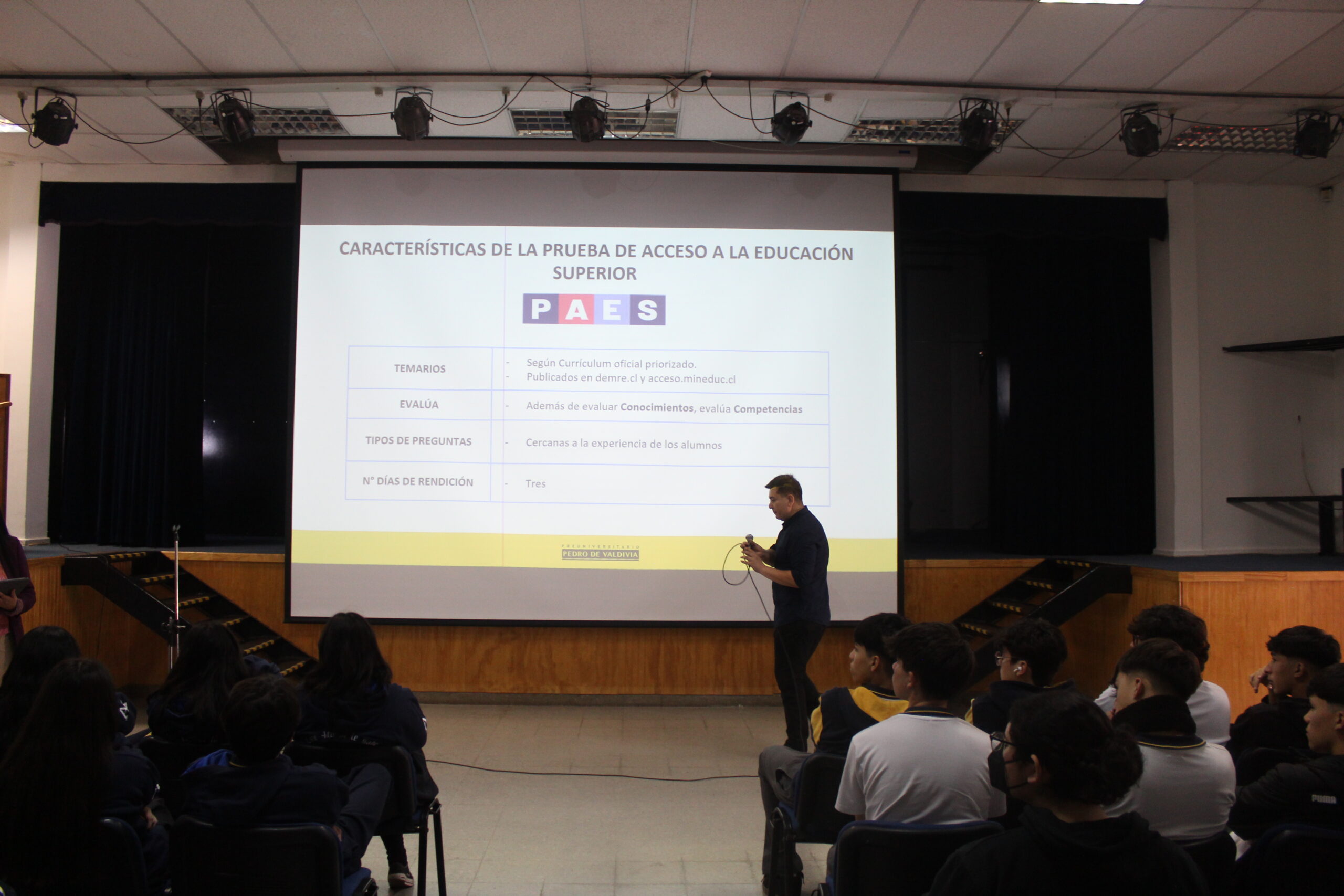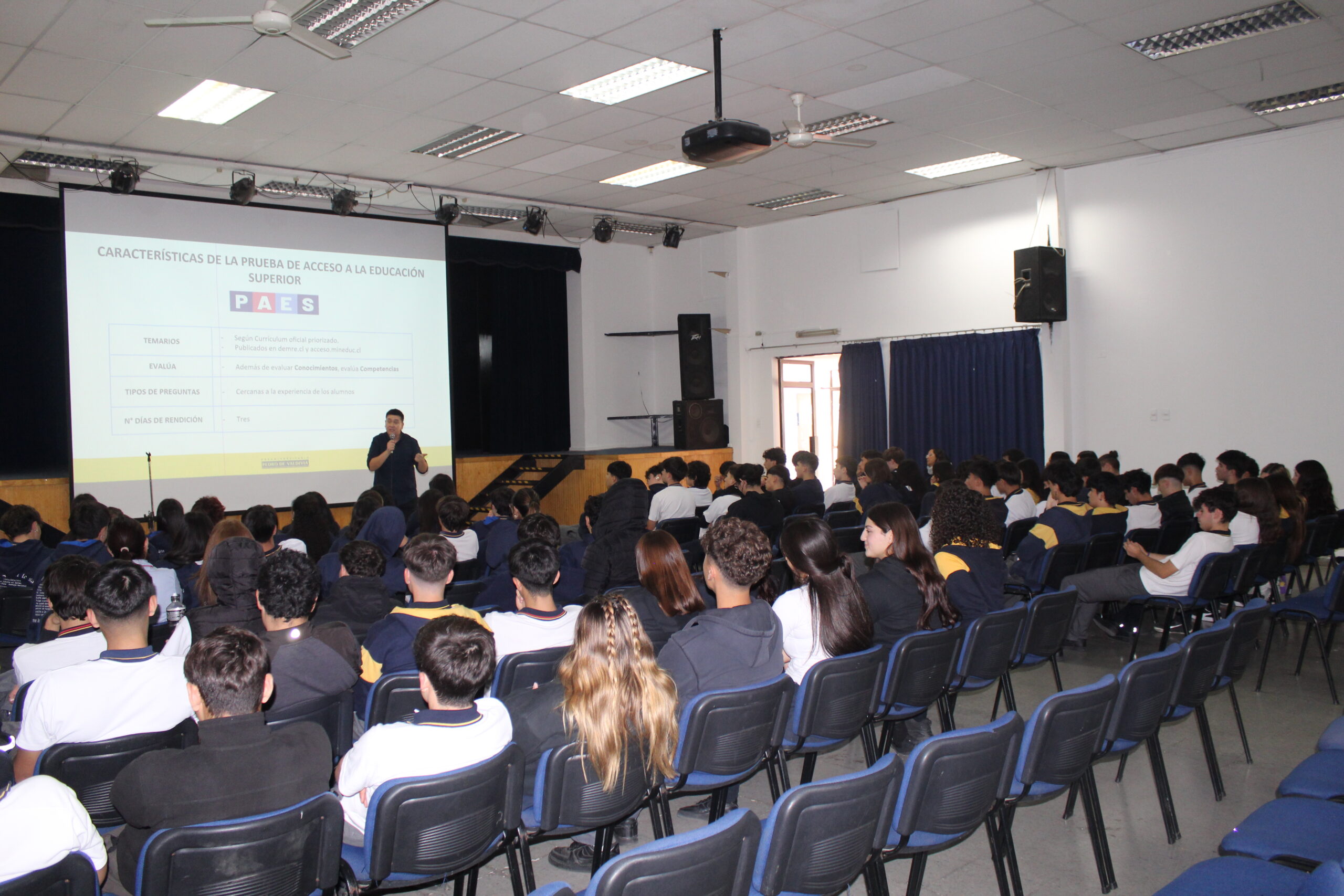 El Preuniversitario Pedro de Valdivia, reconocido por su excelencia académica y preparación para la educación superior, ofreció una charla informativa a los estudiantes de cuarto medio del Colegio San Agustín. Durante la presentación, los alumnos tuvieron la oportunidad de conocer en detalle los programas de estudio, las estrategias de preparación para la Prueba de Acceso a la Educación Superior (PAES) y las herramientas que el preuniversitario proporciona para potenciar sus habilidades y conocimientos.