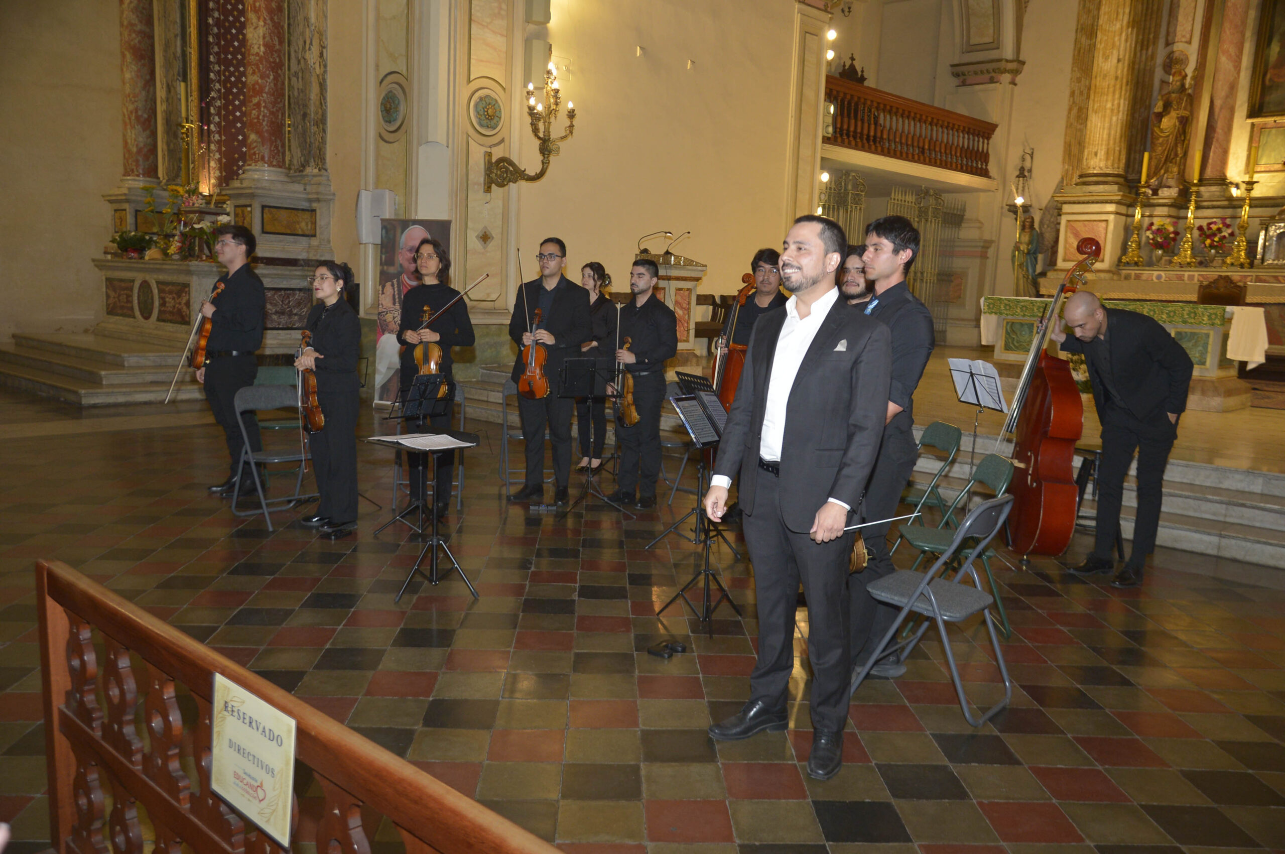 El día viernes 10 de octubre se realizó un concierto en la Iglesia de San Agustín, como parte de las actividades de celebración de los 140 años de nuestro colegio. La orquesta conformada por músicos de la Orquesta de Cámara San Miguel, dirigida por Israel Felipe Olivares, presentó un bello repertorio: Divertimento en Re Menor de W. A. Mozart; Serenata para cuerdas en Mi Menor de Edward Elgar; Suite Holberg de E. Grieg, y culminó con la excelente presentación de la soprano Catalina Lasalle, con Lascia Ch’io Pianga de G. F. Händel.