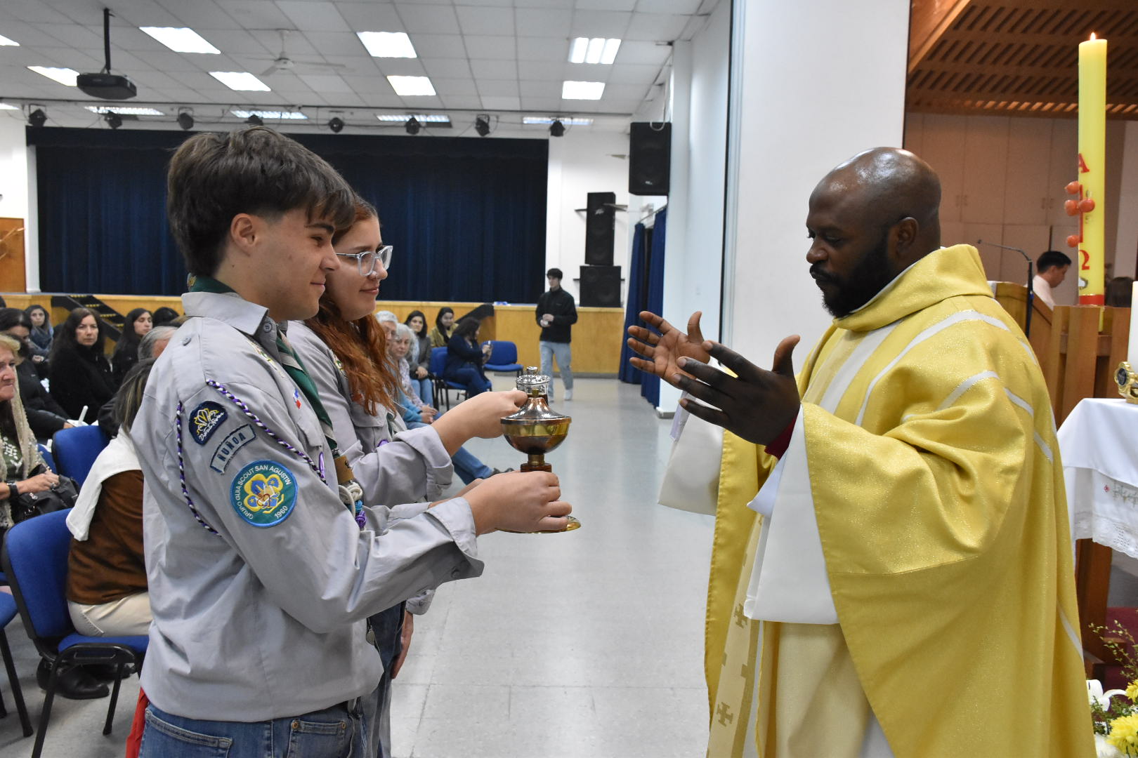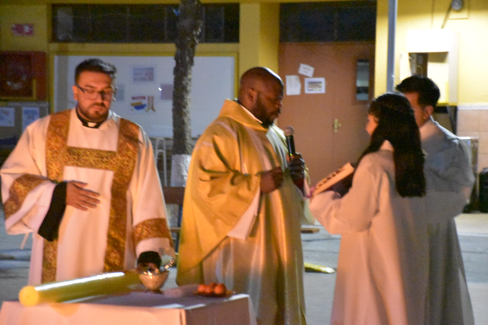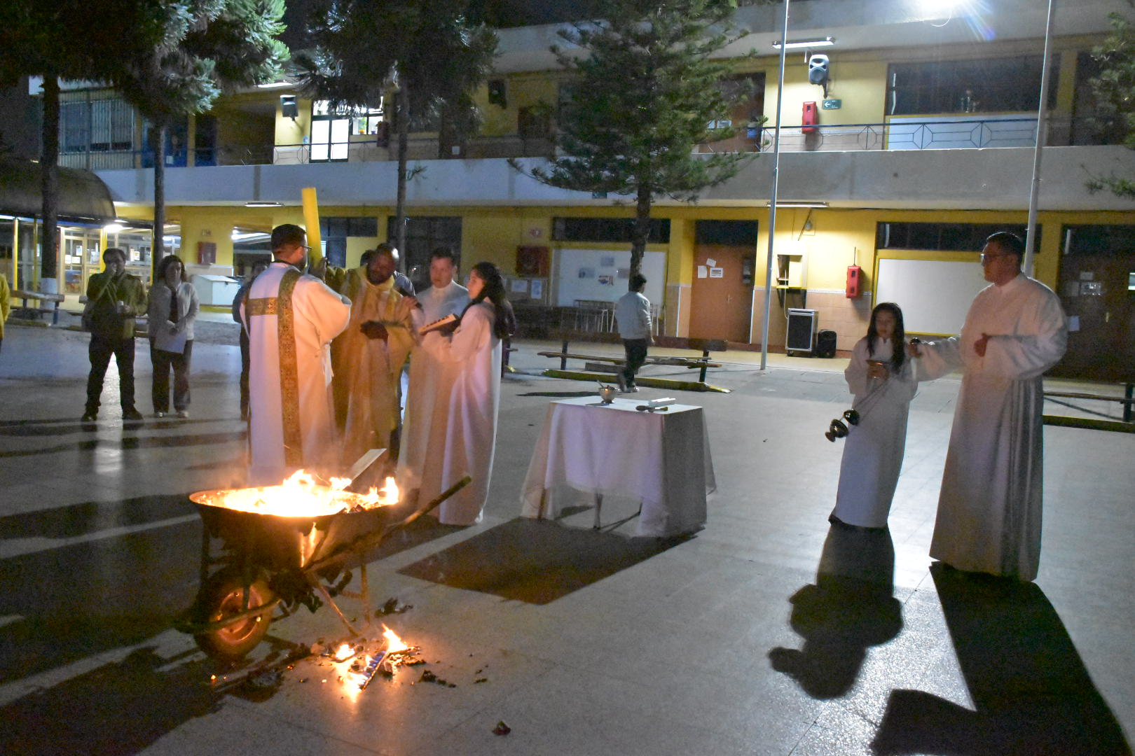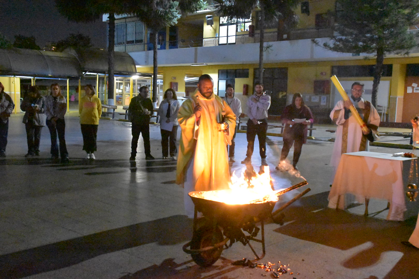 Expectantes de la resurrección del Señor y aguardando el cumplimiento de sus promesas, esperamos hasta la noche. Ya en el Patio Central, se bendijo el fuego nuevo y se dio comienzo la Solemne Vigilia Pascual. Cristo Resucitado, Luz de las naciones, iluminó nuestro caminar. Con esta “Vigilia madre de todas las vigilias”, como nos recuerda San Agustín, iniciamos el tiempo pascual, exultando de gozo por las maravillas que el Señor ha obrado, cantando el cántico nuevo del Aleluya y renovando nuestra fe y las promesas bautismales.